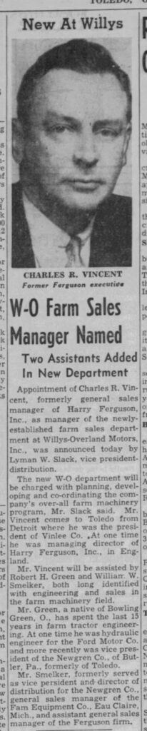 The Toledo Blade article dated Aug. 21, 1950, shows Green returning to Willys, along with W.W. Smelker. While there is no proof, Green and Smelker might have been a package deal arranged by Monroe when they turned the sales and distribution of their lift over to Willys.